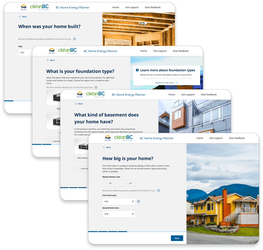 Freshly after graduating, I had the opportunity to take the design lead on CleanBC's BC Home Energy Planner, a new service in development by the Province of British Columbia aiming to introduce B.C. homeowners to home energy upgrade retrofits and the rebates available to them, helping them increase their homes' efficiency while simultaneously lowering their carbon emissions and environmental footprint.