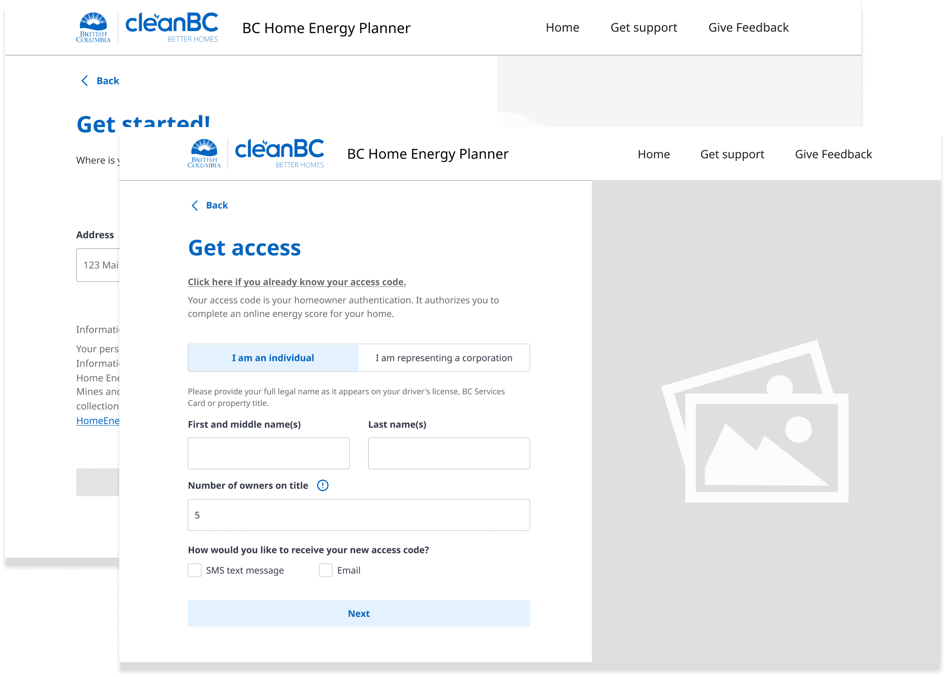 The onboarding flow had to be altered by allowing BCSC login to assume the primary flow while the Access Code became the alternate flow.