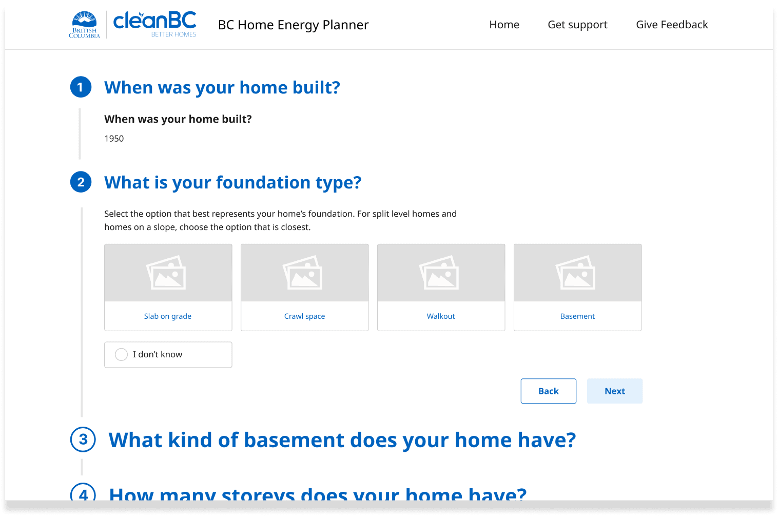 Homeowners answer a series of questions regarding their home to refine their energy report and plan.