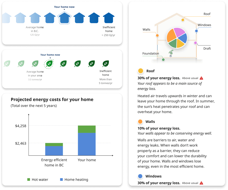 A provincial tool to help users understand and improve the energy efficiency of their home, recommending personalized energy upgrade retrofits with the highest impact.